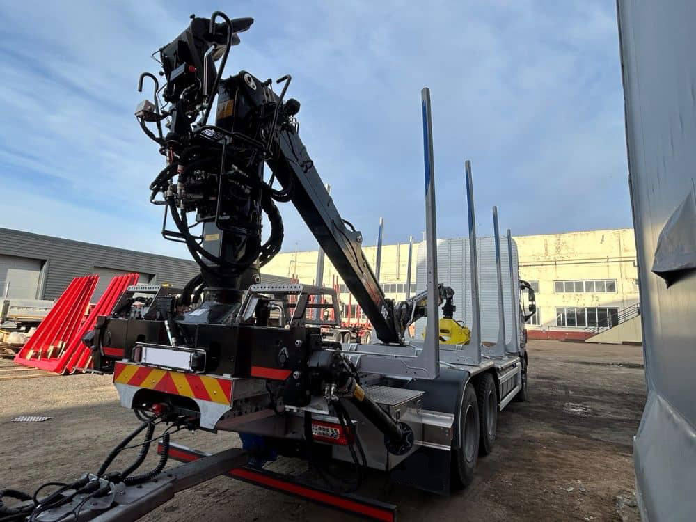 | Лесовозная надстройка | – 4 разборных усиленных алюминиевых ложемента – щит алюминиевый для защиты кабины – все необходимые защитные балки и конструкции для защиты рамы и навесного оборудования шасси – инструментальный ящик – длина загрузочного пространства от щита до балансира крана – 7 000мм |